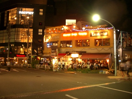 アメリカ橋を渡ると、いつも屋外席で沢山の人たちが、